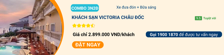 Khách sạn Victoria Châu Đốc là một trong những khách sạn ở An Giang được nhiều du khách yêu thích. Khách sạn có không gian xanh mát, kiến trúc Đông Dương đặc sắc và vị trí ven sông yên bình.