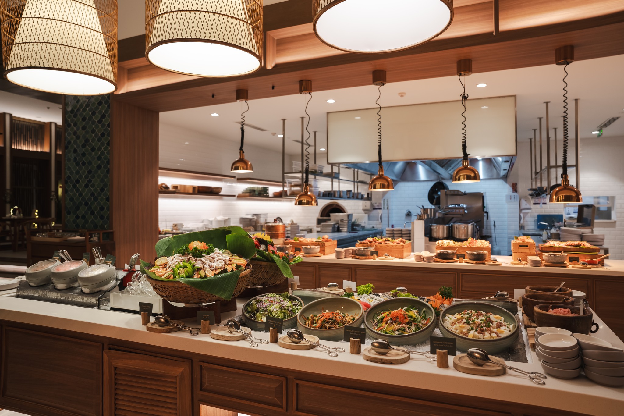 Không khí Tết cổ truyền cũng được tái hiện nhẹ nhàng qua những hoạt động mang tính văn hóa và gắn kết. Tiêu biểu như xin chữ đầu xuân, múa lân sư rồng, workshop trang trí nón lá và các trò chơi dân gian. Với các gia đình có trẻ nhỏ, khu Kid’s Club tổ chức nhiều hoạt động sáng tạo. Giúp các bé có một mùa Tết vừa vui chơi vừa khám phá.
