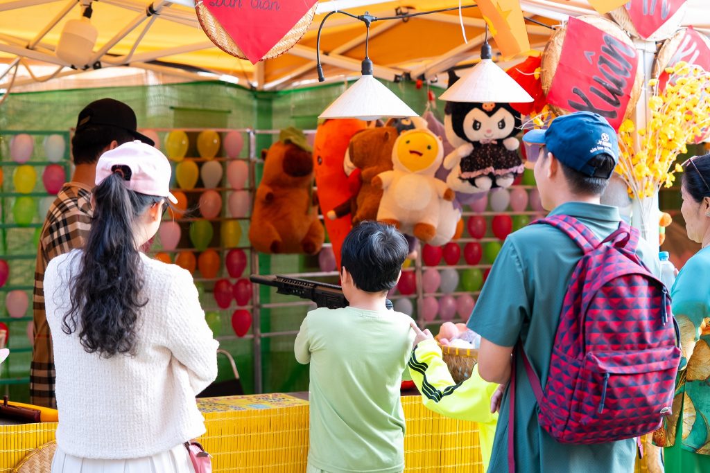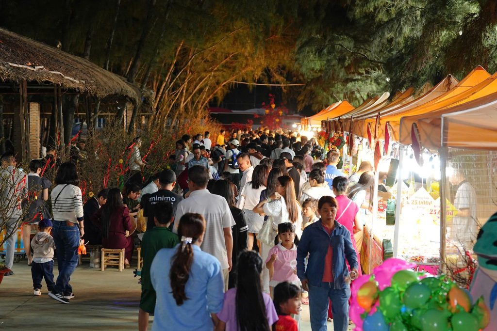 Bên cạnh đó, hơn 40 gian hàng ẩm thực ba miền phục vụ bánh kẹo, mứt Tết… Du khách có cơ hội thưởng thức hương vị truyền thống trong cùng một không gian. Thiết kế mở và bố trí hợp lý tạo điều kiện thuận lợi cho gia đình dạo chơi, chụp ảnh và tham gia hoạt động suốt cả ngày.