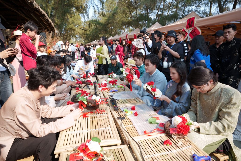 Điểm đáng chú ý của Green Paradise Tet Fest không chỉ nằm ở quy mô tổ chức mà còn ở tính tương tác cao. Thay vì tham quan thụ động, du khách được trực tiếp tham gia sáng tạo. Cùng con trẻ hoàn thành một chiếc nón lá hay một bao lì xì mang dấu ấn cá nhân.