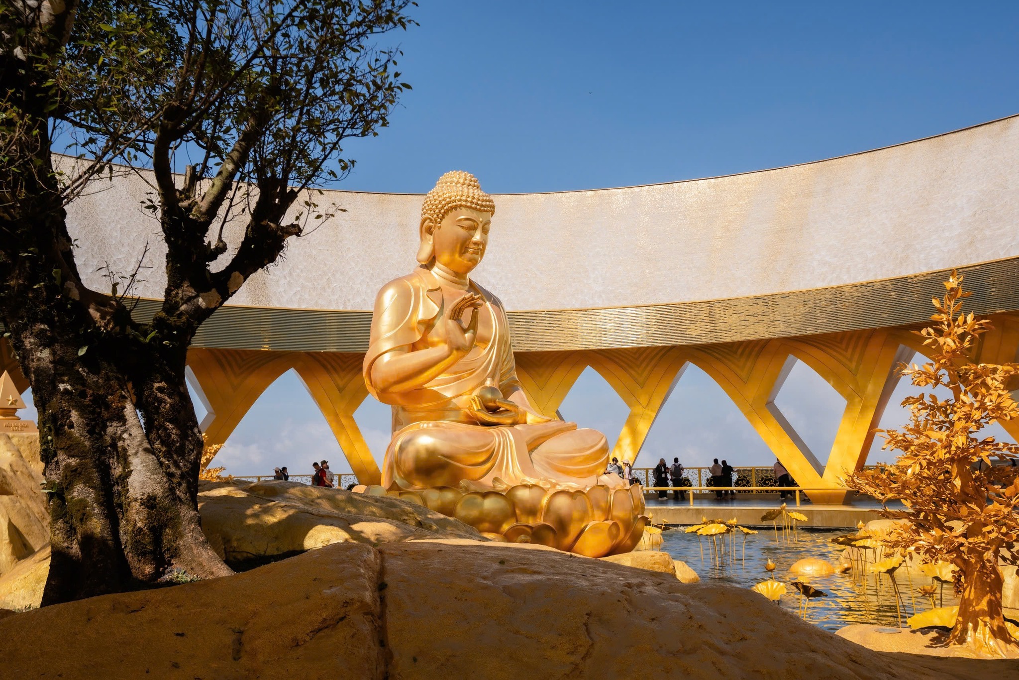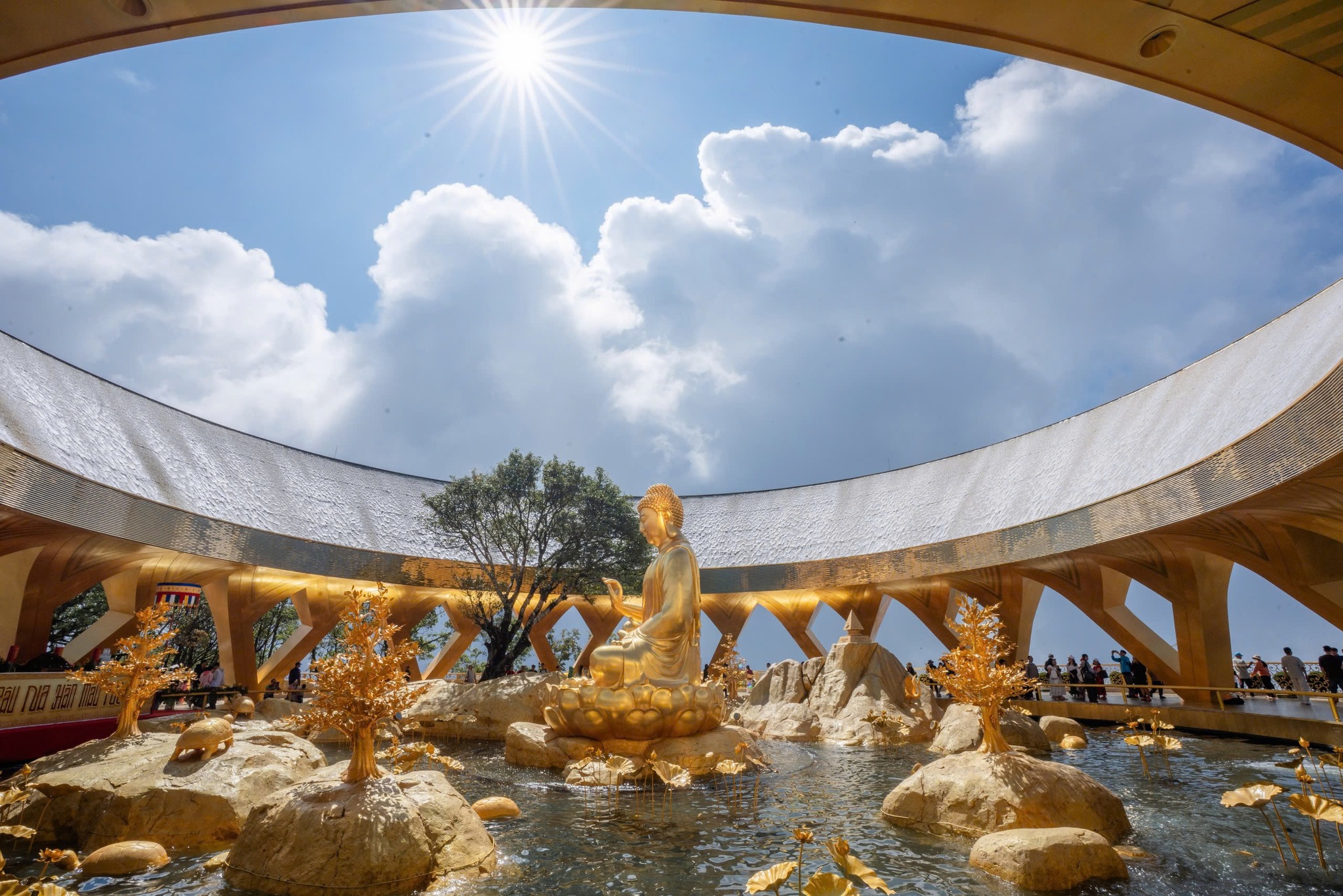Dòng thác Ưu Đàm chảy liên tục xuống hồ Sen Vàng. Hình ảnh ấy tượng trưng cho phước lành lan tỏa khắp nhân gian. Dòng nước chỉ mát lành khi biết luân chuyển không ngừng. Cũng như phước báu chỉ trọn vẹn khi được sẻ chia, mang nhiều giá trị sâu sắc.