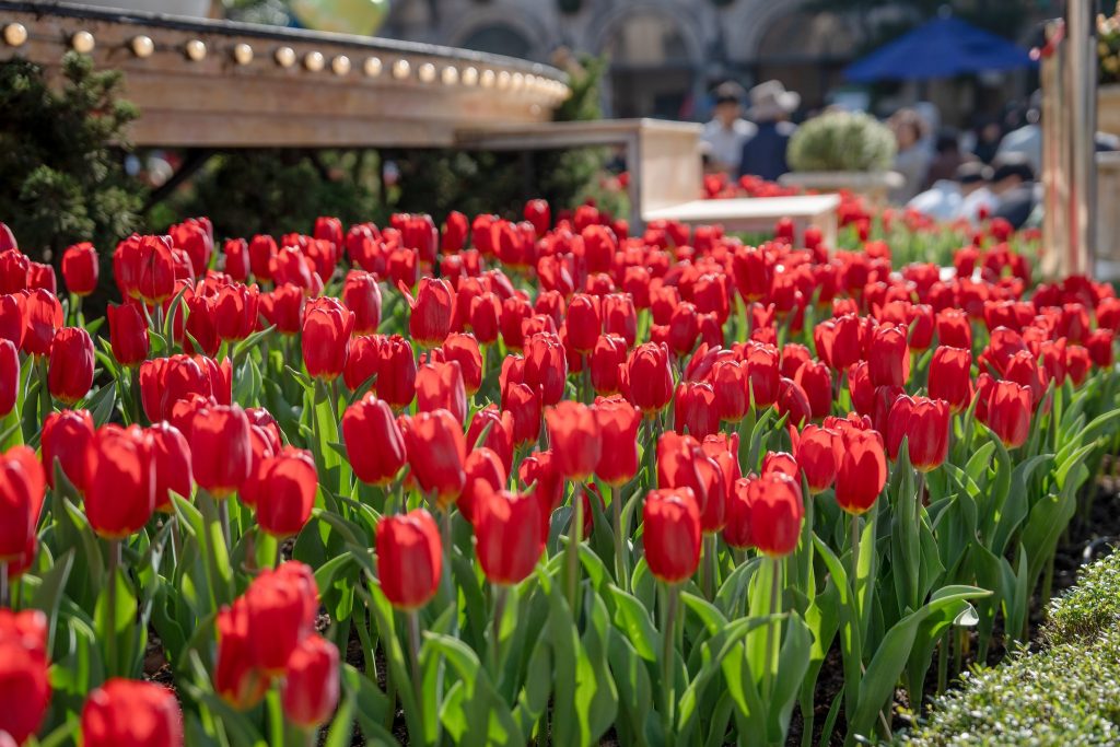 Lần đầu tiên, những thảm Tulip được trồng và trưng bày với quy mô lớn, phủ khắp nhiều khu vực biểu tượng như Vườn Trăng Mơ, Quảng trường Nhật Thực, Vườn Uyên Ương. Giữa tiết trời mát lành đặc trưng của Bà Nà, những cánh Tulip bung nở tạo nên khung cảnh lãng mạn.