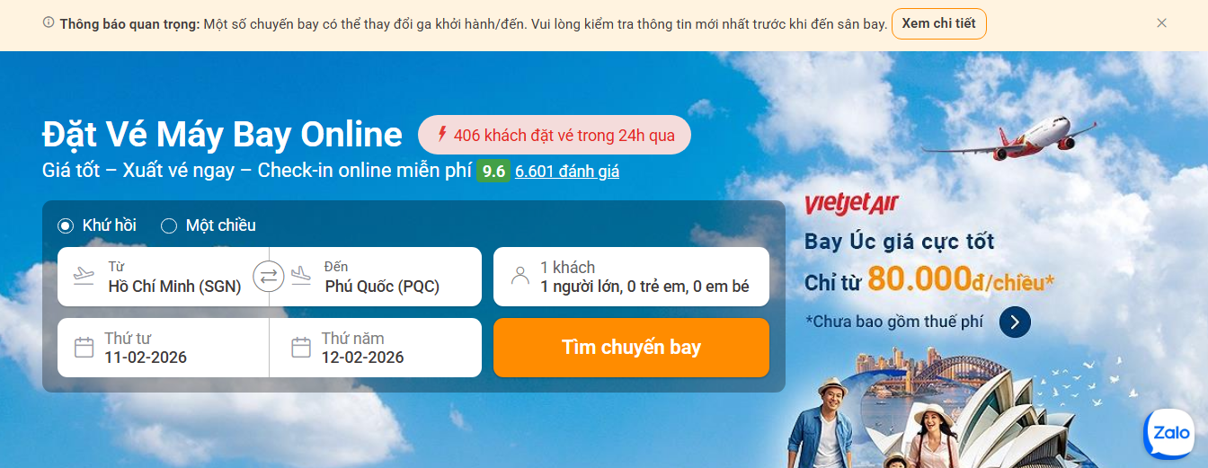 – Quan tâm và trao đổi với iVIVU qua Zalo OA iVIVU – Đặt vé du lịch hoặc gọi ngay hotline 1900 1870 để được hỗ trợ tư vấn vé máy bay nội địa và quốc tế giá tốt