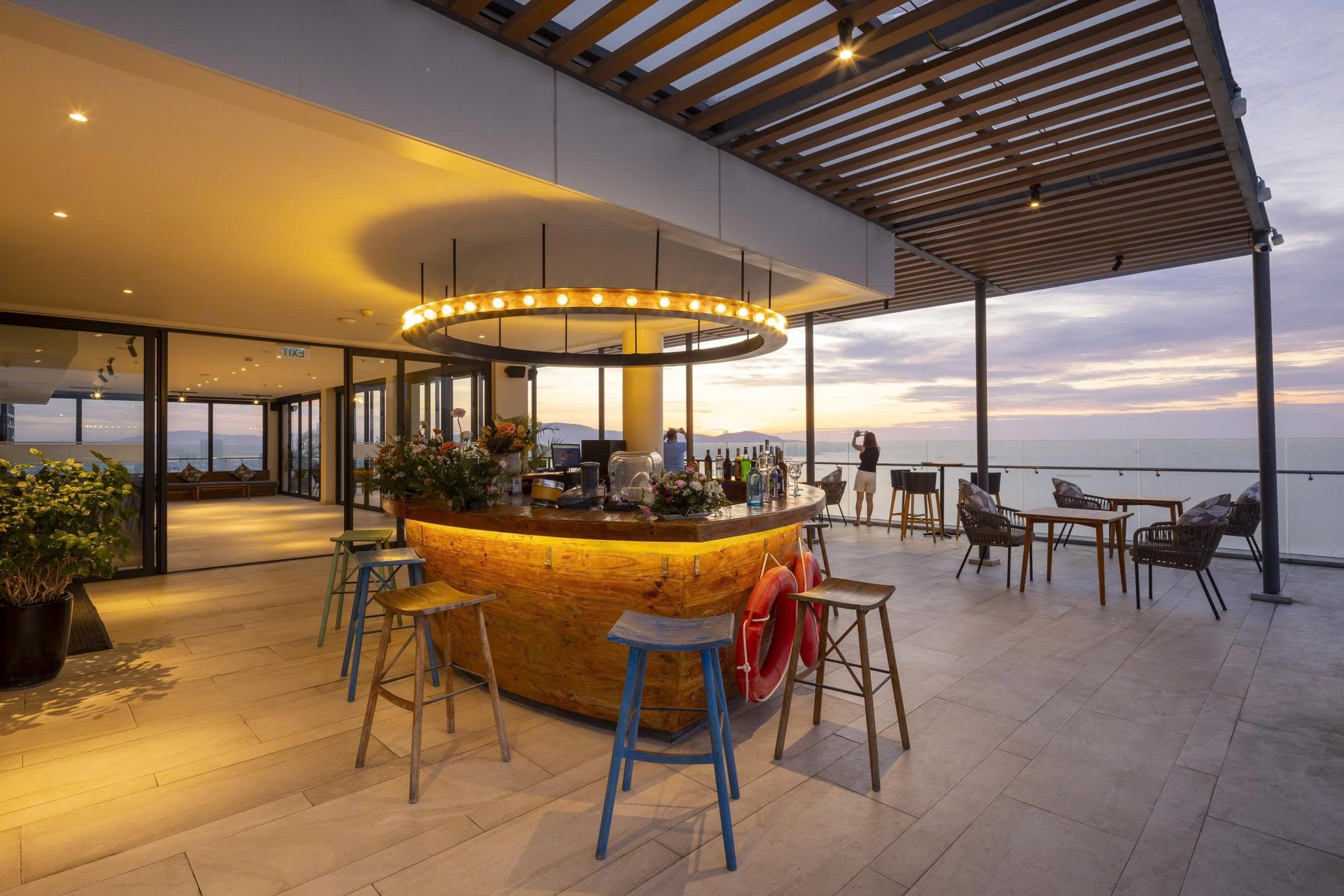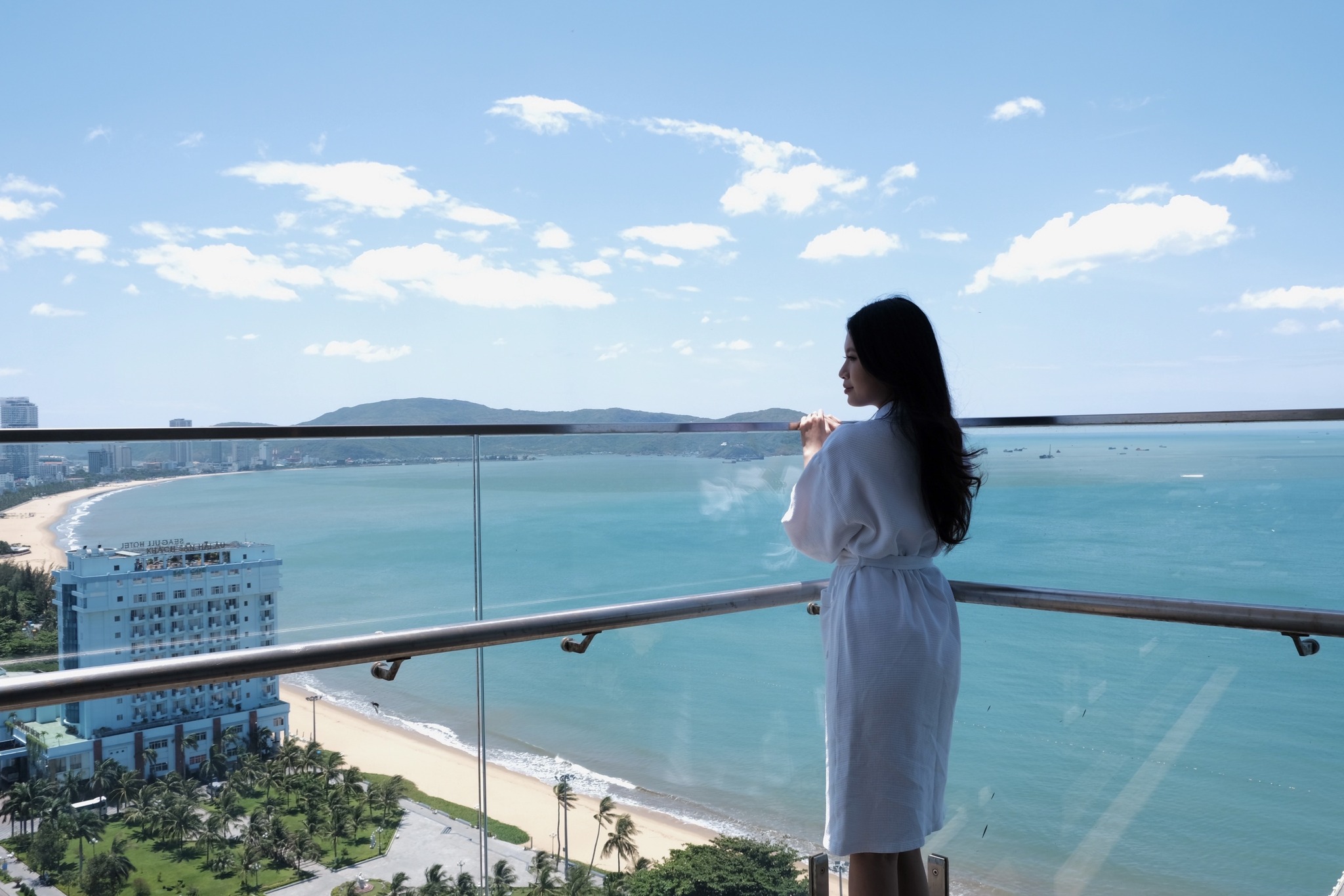 Phòng nghỉ có ban công hướng biển và thành phố sôi động