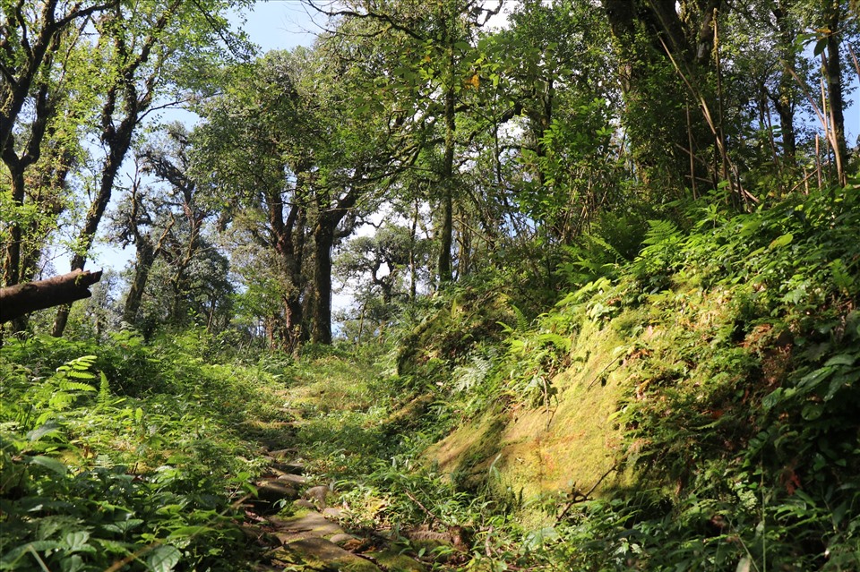 Những phiến đá cổ phủ đầy rêu xanh uốn lượn qua rừng già. Có đoạn len lỏi dưới những tán cây cổ thụ hàng trăm năm tuổi, có đoạn lại mở ra khung cảnh núi non trùng điệp phía xa. Không khí nơi đây luôn ẩm và mát, thường xuyên xuất hiện sương mù dày đặc, tạo nên một không gian huyền bí và tĩnh lặng.