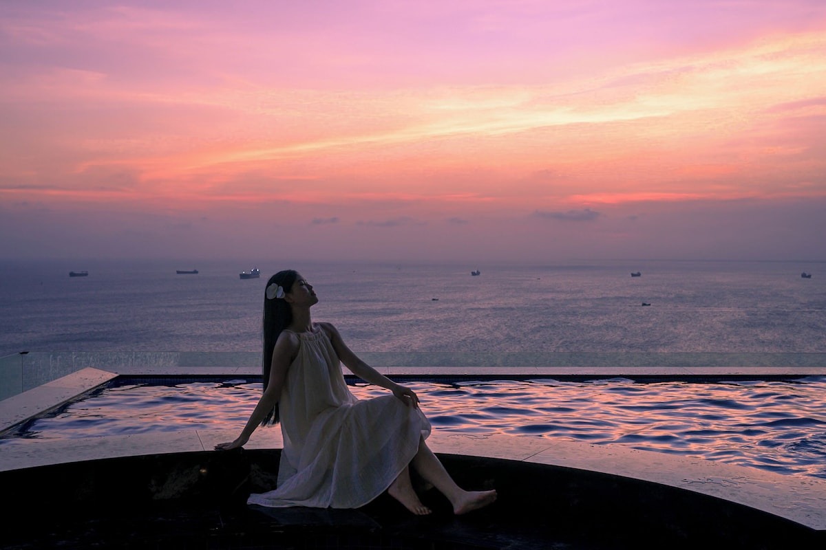 Hồ bơi vô cực hướng biển trên tầng thượng.
