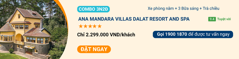 Combo Ana Mandara Villas Dalat Resort and Spa mang đến một trải nghiệm hoàn toàn khác biệt. Dành cho những ai muốn tìm về sự yên tĩnh và gần gũi thiên nhiên khi du lịch Đà Lạt.