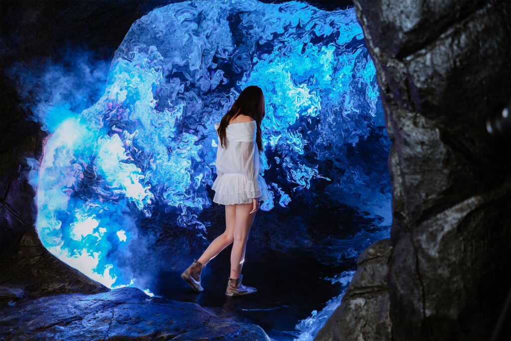Không còn là trải nghiệm quan sát một chiều, tại đây du khách thực sự trở thành một phần của tác phẩm. Mỗi bước chân, mỗi cái vẫy tay đều khiến ánh sáng chuyển động, biến đổi theo thời gian thực. Tạo nên cảm giác như đang bước vào một thế giới nửa thực nửa ảo.