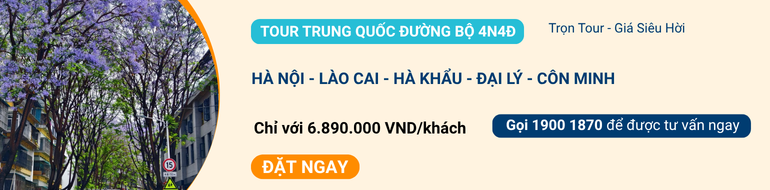 🌿3. Tour Trung Quốc Đường Bộ 4N4Đ: Hà Nội – Lào Cai – Hà Khẩu – Đại Lý – Côn Minh