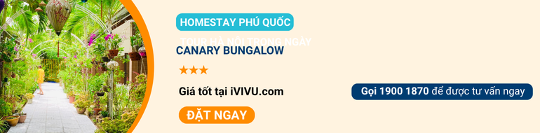 Canary Bungalow là homestay Phú Quốc đẹp review tốt. Cách biển chỉ vài phút đi bộ. Nổi bật với không gian nhiều cây xanh và thiết kế hài hòa với thiên nhiên. Đây là lựa chọn phù hợp cho du khách muốn nghỉ ngơi yên tĩnh và vị trí homestay gần biển.
