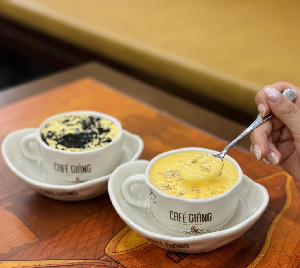 Không thể nhắc đến quán cà phê Hà Nội mà bỏ qua Giảng. Ra đời từ năm 1946, nơi đây nổi tiếng với cà phê trứng. Là sự kết hợp độc đáo giữa vị đắng của cà phê và lớp kem trứng béo mịn. Đây không chỉ là một thức uống mà còn là một phần lịch sử của thành phố.