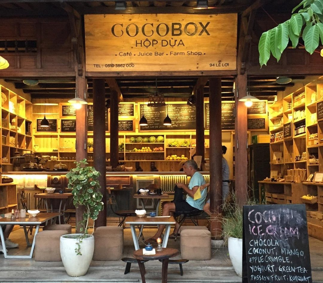 Quán cà phê này được xây dựng trên concept quán cà phê kết hợp với bán nông sản hữu cơ – một hình thức kinh doanh hiện khá phổ biến ở các nước châu Âu. Cái tên Coco cũng phần nào nói lên được cho thực khách hiểu được nguyên liệu chính CocoBox được làm bằng dừa tươi nguyên chất. Bạn sẽ được thưởng thức tách cafe, đồ uống hay các món tráng miệng thơm béo tự nhiên. Còn không gian ở đây mang sự mộc mạc đan xen với hiện đại, thông thoáng tạo nên sự độc đáo trong lòng du khách.