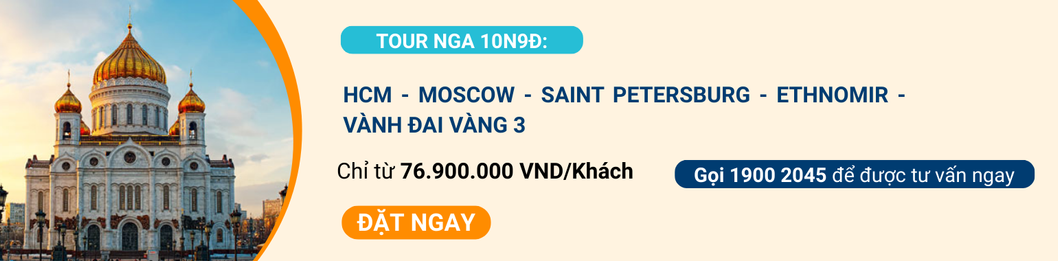 👉 Click đặt ngay “Tour Nga 10N9Đ: HCM – Moscow – Saint Petersburg – Ethnomir – Vành Đai Vàng 3”