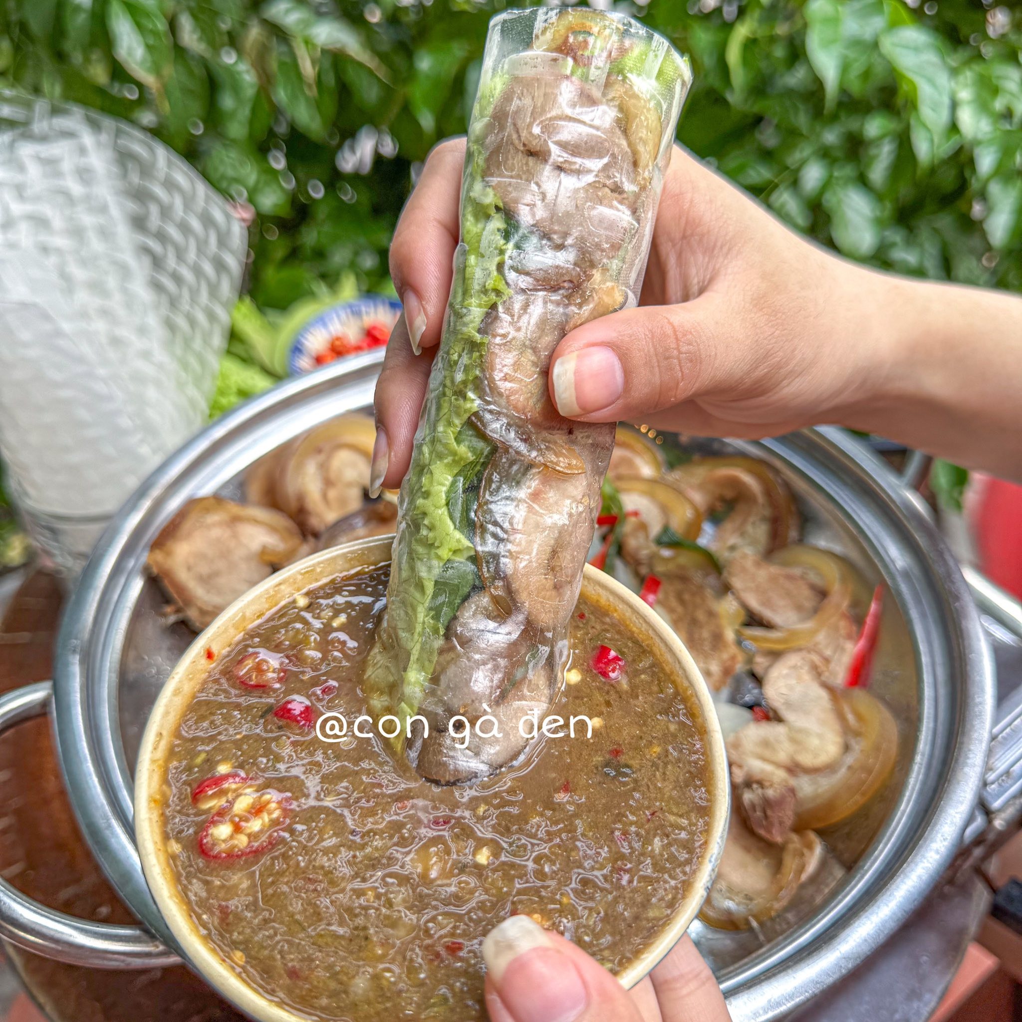 Bò tơ cuốn rau rừng – đặc sản Tây Ninh. Ảnh: Con Gà Đen
