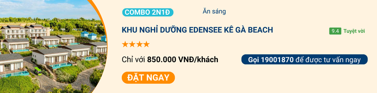 Resort cung cấp các bungalow và phòng nghỉ tiện nghi, phù hợp cho gia đình hoặc nhóm bạn. Với mức giá hợp lý, dịch vụ thân thiện và khung cảnh biển yên bình, Edensee Kê Gà Beach là resort gần mũi Kê Gà phù hợp cho kỳ nghỉ tránh xa sự đông đúc.