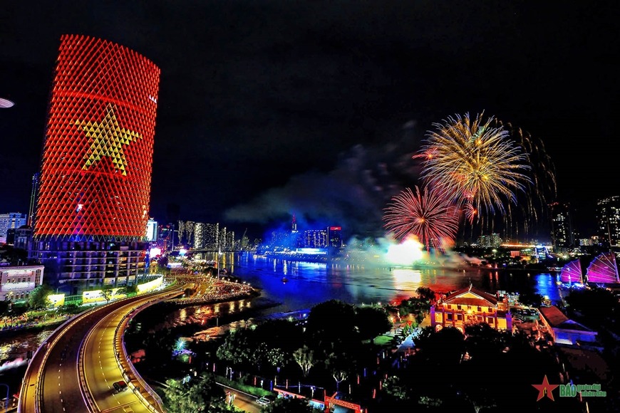 Pháo hoa đêm giao thừa chào năm mới rực rỡ. Ảnh: Báo Quân đội nhân dân