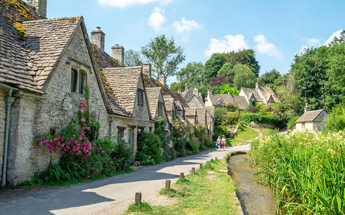 Làng cổ Bibury: Một trong những ngôi làng đẹp nhất và nổi tiếng nhất ở vùng Cotswolds, Anh. Với kiến trúc cổ kính, cảnh quan thơ mộng và không khí yên bình, Bibury thu hút hàng ngàn du khách mỗi năm.