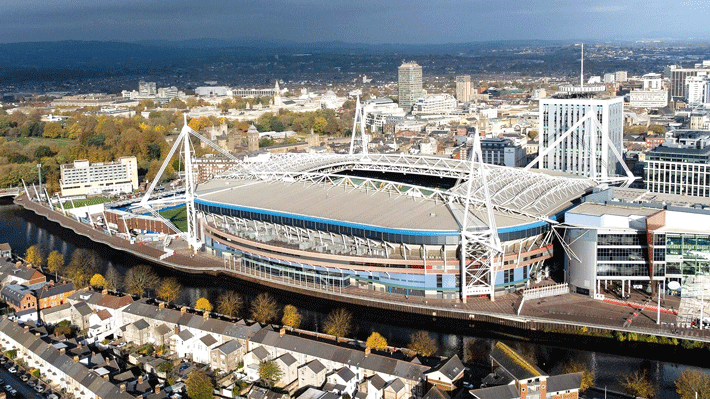 Sân vận động Principality: Sân nhà của Liên đoàn Bóng bầu dục xứ Wales (WRU), có sức chứa ấn tượng, khiến đây trở thành sân vận động lớn nhất xứ Wales và lớn thứ tư ở Vương Quốc Anh.