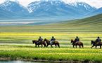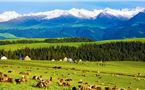 Khung cảnh thảo nguyên xanh mướt bao la, đặc trưng ở Tân Cương.