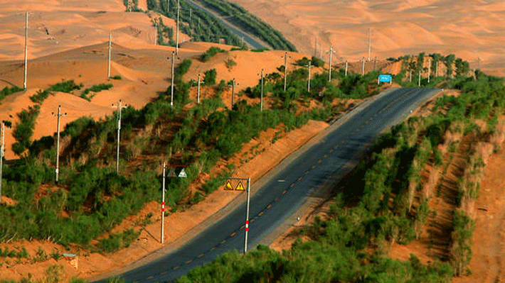 Chụp hình tại trạm dừng sa mạc Kalamaili, phóng tầm nhìn quang cảnh sa mạc rộng lớn. Sa mạc nổi tiếng với hệ sinh thái độc đáo, nguồn tài nguyên động vật quý hiếm. Một trong những khu bảo tồn lớn nhất Trung Quốc với hệ động thực vật phong phú: lừa hoang Mông Cổ, linh dương Saiga, các loài chim sa mạc…