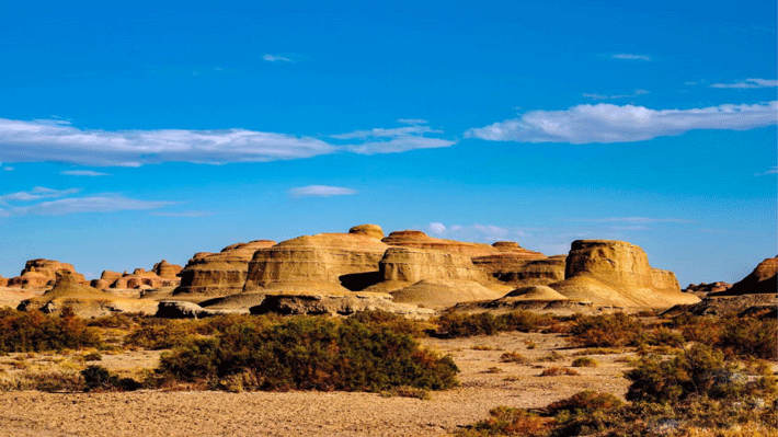 Trên đường sẽ đi qua vùng Junggar Basin - Nổi danh với địa hình kỳ lạ, người ta đặt tên cho nơi đây là “Thành phố Quỷ”, hay “thành phố của những hang gió”.