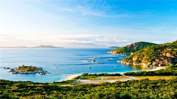 Đến cảng Ba Ngòi khởi hành ra đảo Bình Ba. Trên thời gian ca nô di chuyển ra đảo đoàn sẽ được chiêm ngưỡng vẻ đẹp thiên nhiên hoang sơ với biển xanh dập dờn.