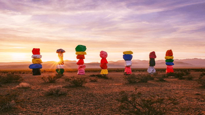- Check-in Seven Magic Mountains: Công trình nghệ thuật độc đáo giữa hoang mạc.