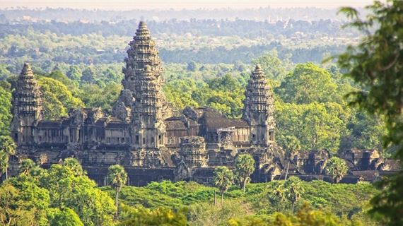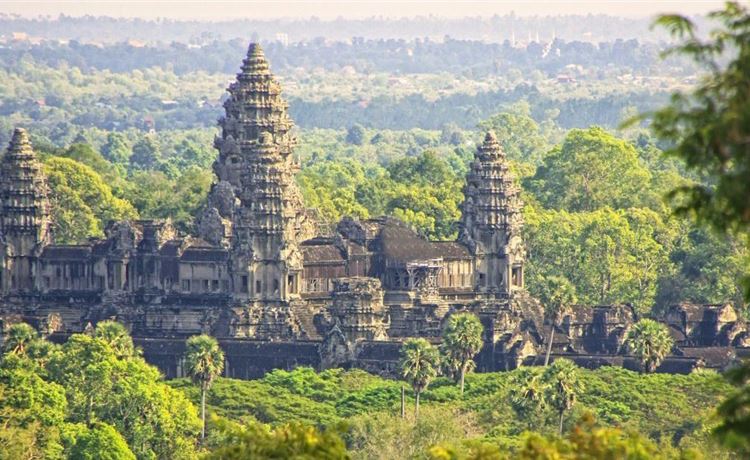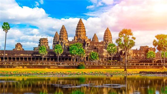 Đền Angkor Wat - Biểu tượng vĩ đại của Campuchia với kiến trúc Khmer tráng lệ, được xem là một trong những kỳ quan tôn giáo lớn nhất thế giới.