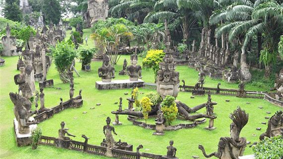 Công viên Buddha Park - Bên sông Mekong nổi tiếng với các tượng Phật độc đáo, khắc họa theo Phật giáo Ấn Độ, xây dựng từ 1958 bởi Thiền sư Bunluea Suliat.