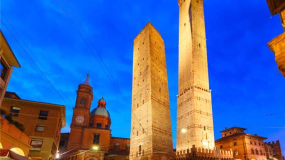 Two Towers - hay còn gọi là Hai Tháp, bao gồm tháp Asinelli (97,2m) và tháp Garisenda (48m), vốn là biểu tượng nổi tiếng của thành phố Bologna. Hai tòa tháp này được xây dựng vào thế kỷ XII khi tầng lớp quý tộc địa phương thi nhau xây tháp để phô trương quyền lực.