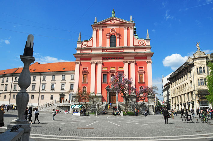 Quảng trường nổi bật với Nhà thờ Franciscan màu hồng cá hồi và Tượng đài nhà thơ France Prešeren. Đây là điểm gặp gỡ xã hội, bao quanh bởi kiến trúc Baroque và Art Nouveau, hoàn toàn dành cho người đi bộ.