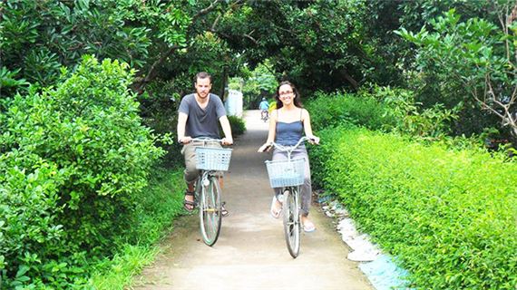 Trải nghiệm ngồi xe lam du lịch quanh cồn.