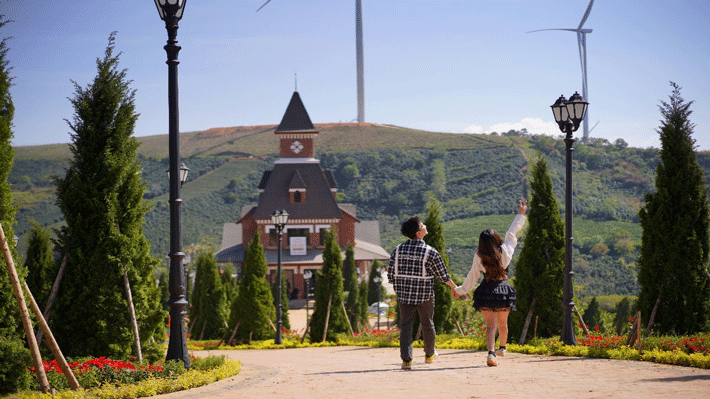 Tham quan Vườn Châu Âu (Euro Garden) với không gian lãng mạn, nổi bật cùng cối xay gió Hà Lan, quán cà phê toa tàu đỏ và nông trại trà cổ kính.