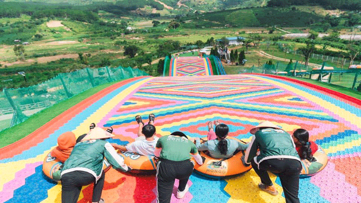 Trải nghiệm “Mông Cổ thu nhỏ” giữa cao nguyên xanh mát. Điểm nhấn là đường trượt cầu vồng dài nhất Đà Lạt, mang đến cảm giác phấn khích khi lao vun vút trên dốc đầy màu sắc.