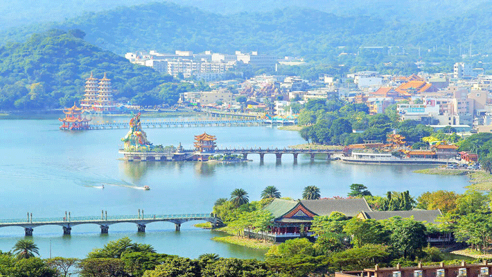 Tại đây có Tháp Long Hổ: Là một trong những ngôi chùa có kiến trúc đẹp nhất ở Đài Loan. Ngôi chùa có hai tòa tháp chính là tháp Long và tháp Hổ, mỗi tháp cao 7 tầng, cửa ra vào được thiết kế độc đáo với một bên là Rồng, một bên là Hổ với ngụ ý vào Rồng ra Hổ tượng trưng cho cát tường, thịnh vượng và may mắn.