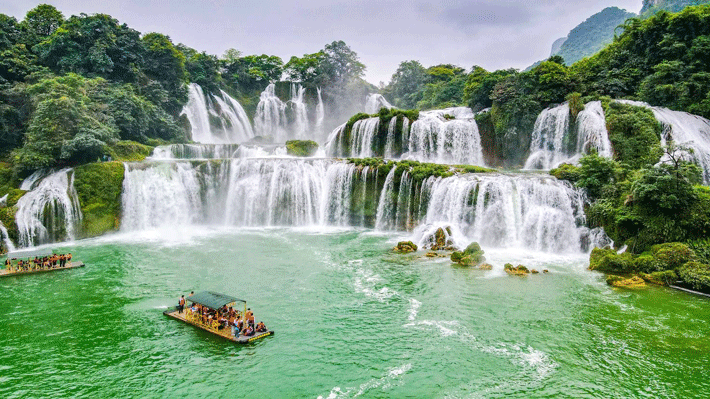 Thác Bản Giốc cao 53m, chia làm 3 tầng, là một trong những thác nước đẹp nhất Việt Nam và lớn thứ 4 trong top 10 thác kỳ vĩ nhất thế giới, nằm trên biên giới Việt - Trung.