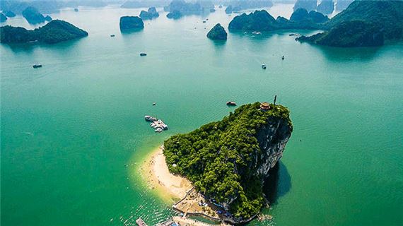 Tiếp theo, Tàu sẽ đưa Quý khách đến với đảo Ti Top. Quý khách có thể tắm biển tại bãi tắm Ti Top với bãi cát trắng, hoặc treekking leo lên đỉnh núi Ti Top ngắm nhìn toàn cảnh Vịnh Hạ Long