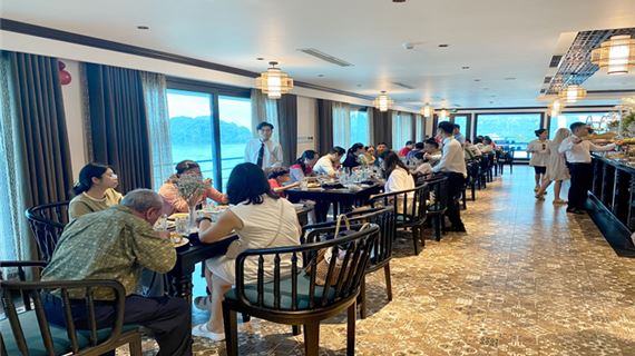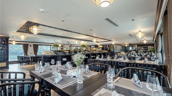 - Đồ uống trên tàu: Mini bar trong phòng, đồ uống được yêu cầu từ menu đồ uống của tàu tại quầy bar.
