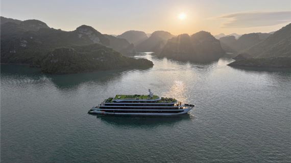 Ngắm hoàng hôn Lan Hạ: Thư giãn trên boong tàu, tận hưởng hoàng hôn lãng mạn.
