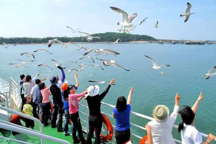 Trải nghiệm đi Phà cho Hải âu ăn lúc hoàng hôn : đây là điểm đặc sắc của chương trình , du khách sẽ đi phà và cho vô số hải âu ăn (chi phí mua thức ăn cho Hải Âu tự túc) trong khi tận hưởng làn gió biển sảng khoái và phong cảnh hữu tình của xứ sở kim chi.