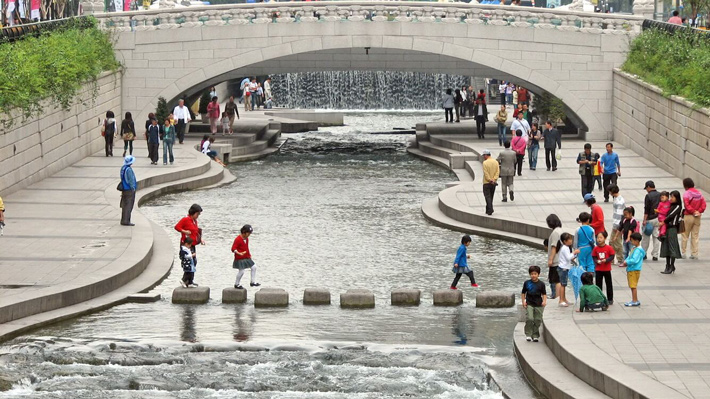 Suối Cheonggyecheon - Con suối trong mát dài 5.8 km giữa lòng thủ đô Seoul.