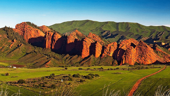 Dãy núi Jety - Oguz: Với vẻ đẹp huyền bí của “Trái tim tan vỡ” và “Bảy đầu bò”, giữa khung cảnh tuyết tùng xanh mướt và đàn gia súc thong dong gặm cỏ. Du khách có thể tham quan làng du lịch “Golden Spa” và trải nghiệm cưỡi ngựa – nét đặc trưng của văn hóa du mục - trước khi đến thành phố Karakol.