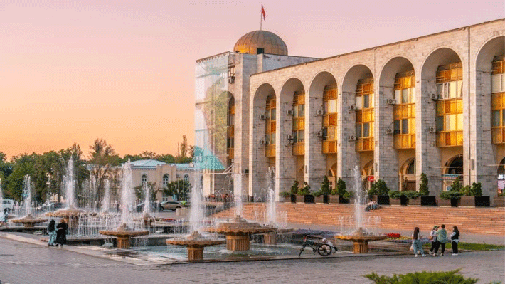 Nhà Trắng: Tòa nhà tổng thống nhà nước, nơi làm việc của tổng thống Kyrgyzstan. Tham quan cột cờ (đổi gác), tượng đài Manas, tượng đài Lenin, Nhà thờ Hồi giáo, Công viên Oak.