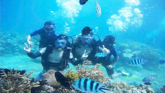 Quý khách sẽ được mặc đồ chuyên dụng bắt đầu khám phá đại dương bằng dịch vu bình lặn khí.