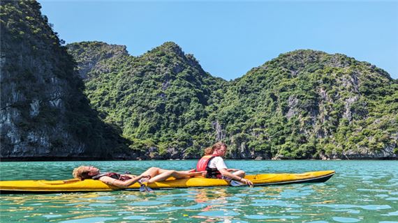 Sau bữa sáng, khám phá khu vực Trà Báu bằng thuyền Kayak - địa điểm quay bộ phim Kong Skull Island (King Kong) nổi tiếng ở Quảng Ninh năm 2018 và hiểu về cuộc sống của ngư dân địa phương.