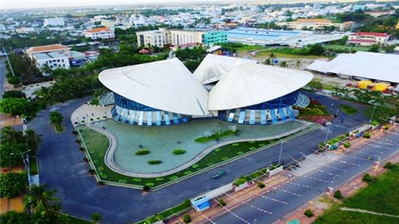 Nhà hát Cao Văn Lầu hay còn gọi là Nhà hát “ba nón lá” có hình dáng đặc biệt mà giản dị, gắn liền với các hoạt động sinh hoạt của những người phụ nữ các tỉnh Nam Bộ.