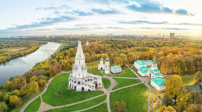 Công viên Kolomenskoe: Di sản văn hóa thế giới được UNESCO công nhận, từng là cung điện mùa hè của Nga Hoàng. Du khách có thể chiêm ngưỡng cung điện gỗ Aleksey, nhà thờ Đức Chúa Thăng Thiên, ngôi nhà gỗ của Pie Đại đế và thưởng ngoạn khung cảnh thơ mộng của vườn táo bốn mùa.