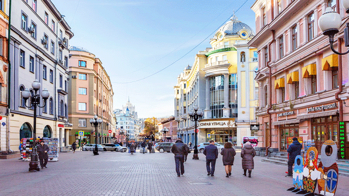 Phố cổ Arbats - Một trong những con phố cổ kính nhất Matxcova, nổi tiếng với không gian đi bộ yên bình, không xe cộ ồn ào. Nơi đây gây ấn tượng bởi những ngôi nhà mang kiến trúc mặt tiền độc đáo, đậm dấu ấn lịch sử và nghệ thuật Nga.