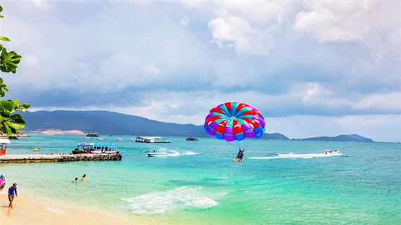 Đến Bãi Tranh. Quý khách Trải nghiệm tham quan tắm biển, thư giãn trên bãi biển cát trắng. Ngoài ra Có thể trải nghiệm thêm các trò chơi đầy hấp dẫn như Dù bay, mô tô nước, tàu chuối.. (Phí tự túc)