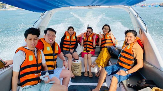 HDV hướng dẫn du khách lên tàu, khởi hành đến địa điểm ngắm san hô – nơi lặn biển tuyệt đẹp của vịnh Nha Trang. Trên đường đi, HDV sẽ giới thiệu sơ lược về các kỹ năng và cách sử dụng những trang thiết bị lặn biển.